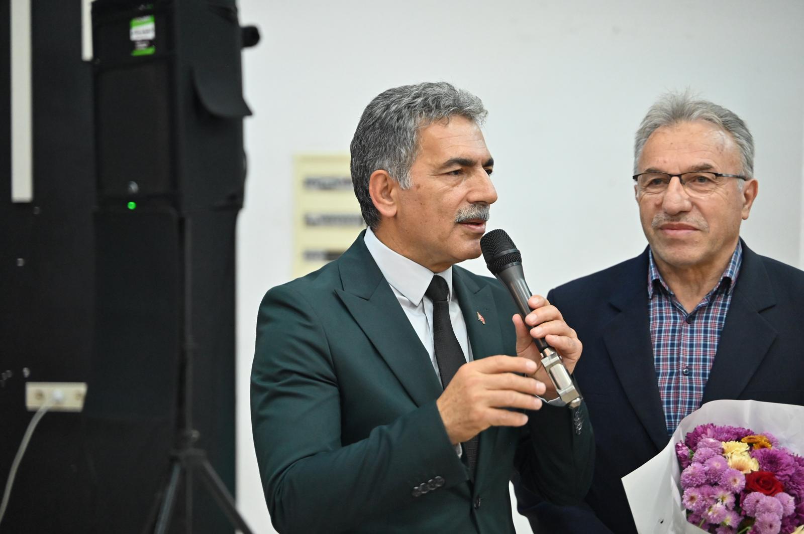 Başkan Deviren konuşmasının ardından İlçe Milli Eğitim Müdürü Adnan Uluğ ile birlikte, Gemlik’te görev yapan ve yakında emekli olacak en kıdemli öğretmen olan 64 yaşındaki Ömer Çelenoğlu’na çiçek takdim etti.