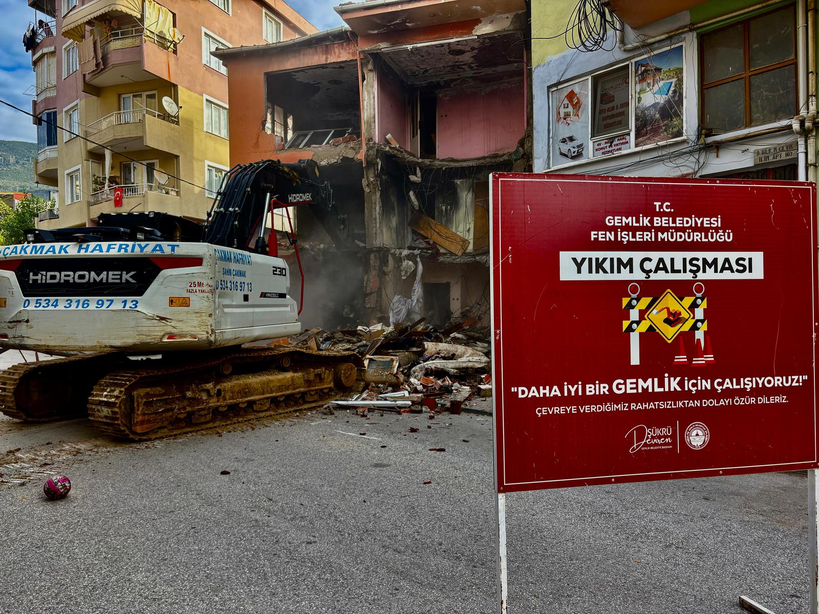 Gemlik Belediyesi, kent genelinde kullanım ömrünü tamamlamış ve güvenlik riski oluşturan binalarla mücadelesini sürdürüyor.