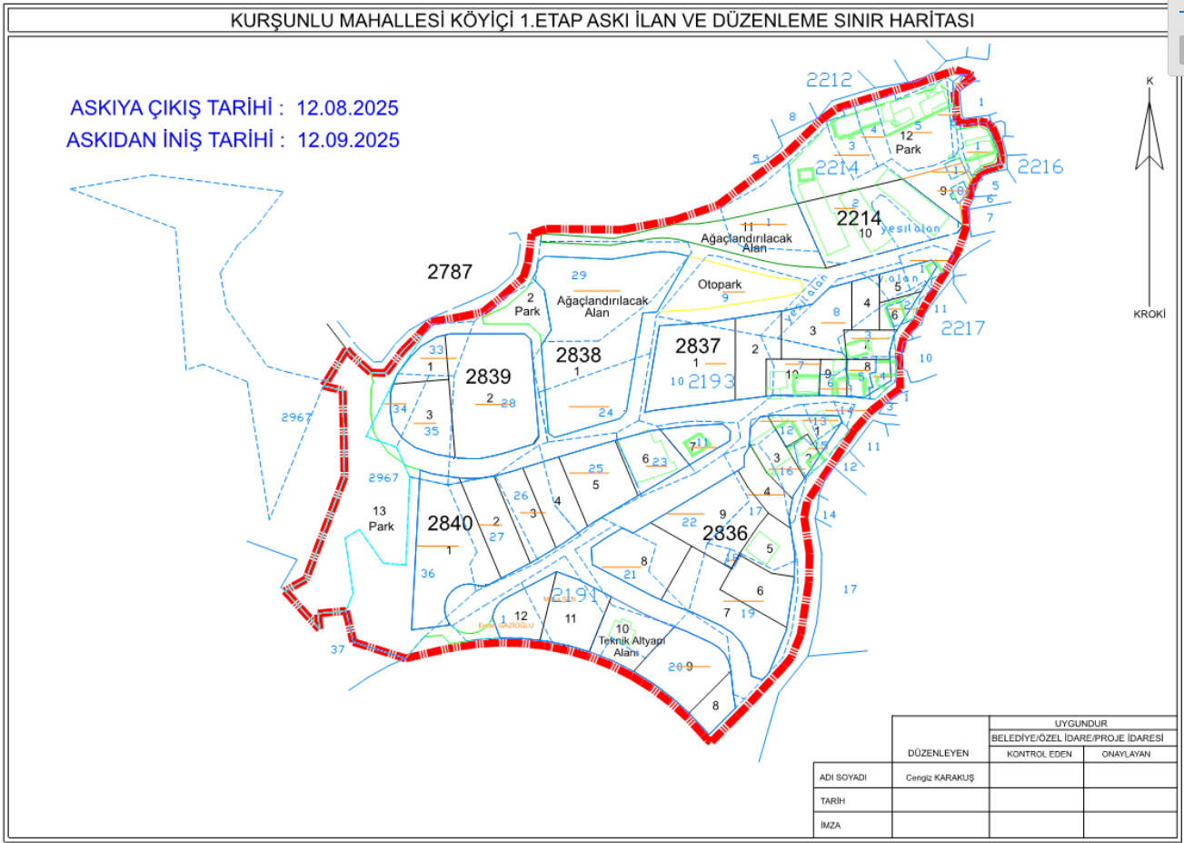 Kurşunlu Mahallesi Köyiçi 1. Etap (yaklaşık 6 hektar alanda) 18. Madde Uygulaması 3. Askı