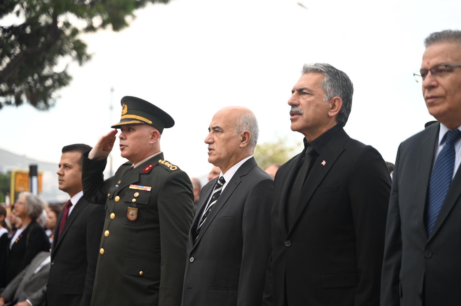 Atatürk Anıtı önünde gerçekleştirilen törende, Gemlik Kaymakamlığı, Garnizon Komutanlığı ve Gemlik Belediye Başkanlığı tarafından anıta çelenkler sunuldu. Saat 09.05’te çalan siren eşliğinde saygı duruşunda bulunulmasının ardından İstiklâl Marşı okundu.