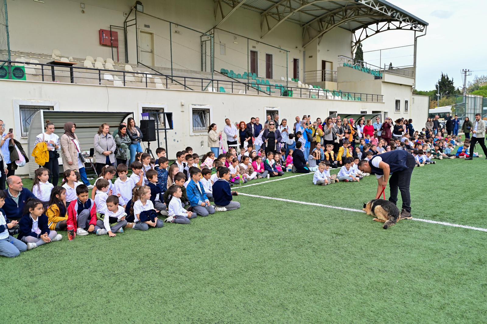 Etkinlik kapsamında Umurbey Stadyumu’nda düzenlenen gösteride, belediye eğitmeninin çalıştırdığı köpekler; 5 yaşındaki Alman Kurdu, 2 yaşındaki Belçika Melinois ve 2 aylık Dutch cinsi yavru köpek, temel komut eğitimleriyle büyük beğeni topladı. Öğrenciler ve vatandaşlar, gösteriyi alkışlarla takip etti.