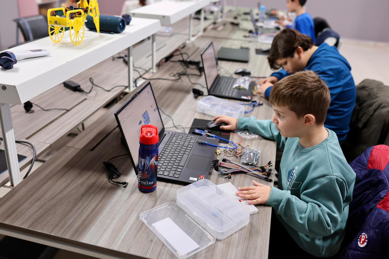 Atölyede dersler uygulamalı olarak yürütülüyor. Çocuklar, sensörler, motorlar, devre elemanları ve kodlama platformlarıyla birebir çalışarak kendi projelerini oluşturuyor. Böylece yalnızca teorik bilgi edinmekle kalmayıp, gerçek hayatta karşılığı olan ürünler geliştirme fırsatı buluyorlar. Eğitimlerde takım çalışması, yaratıcılık ve problem çözme gibi beceriler de ön plana çıkarılıyor.