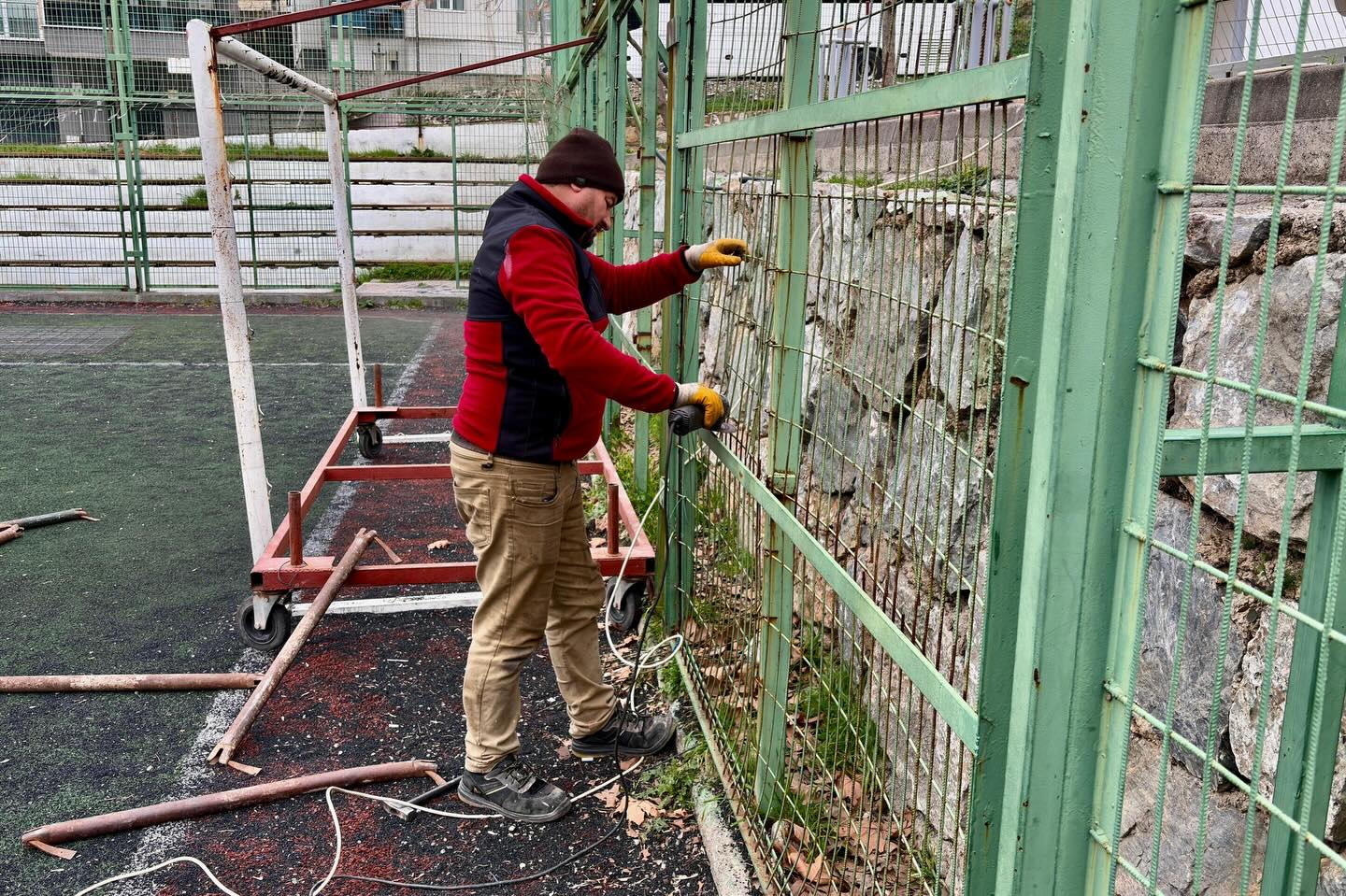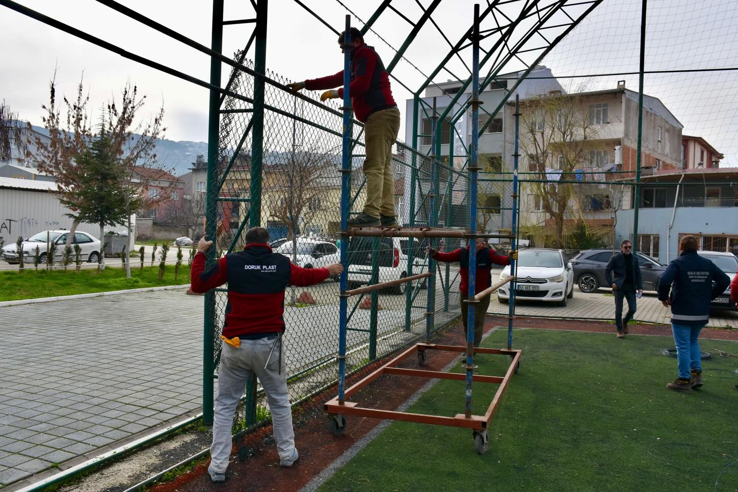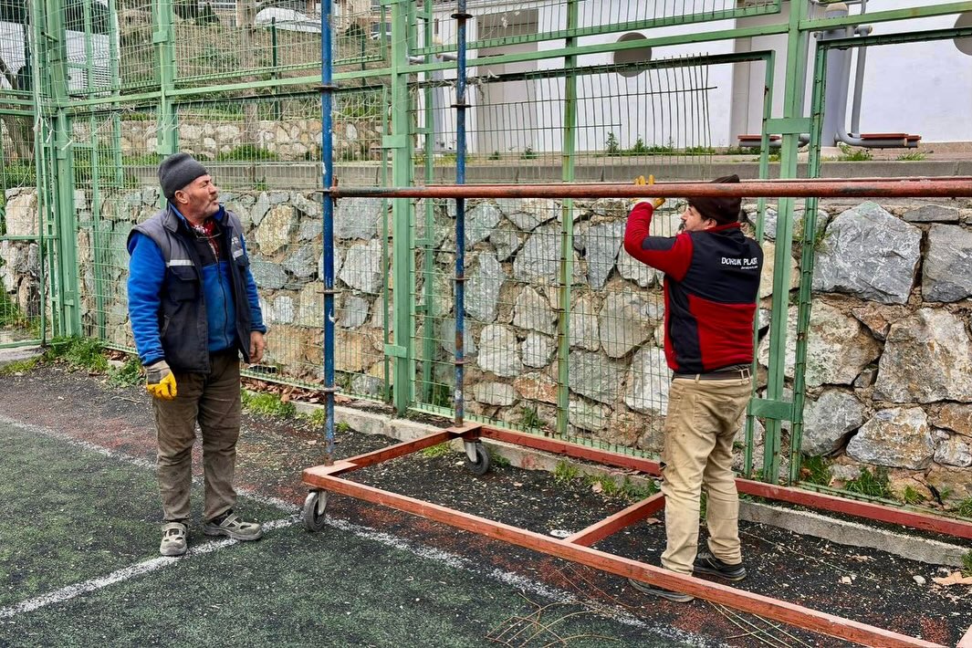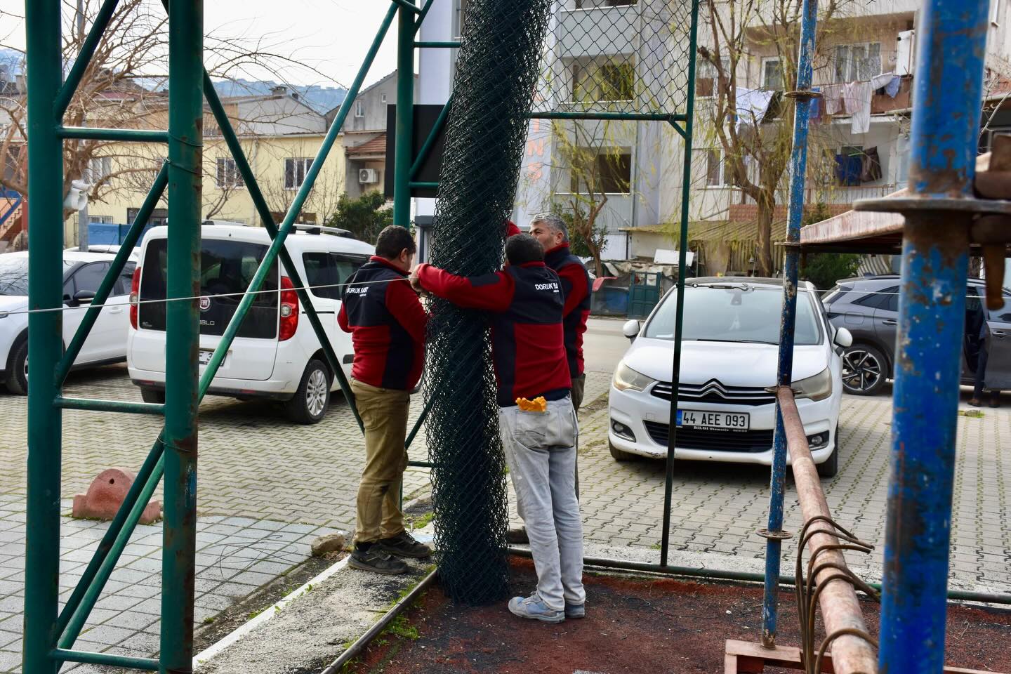 Gemlik Belediyesi Park ve Bahçeler Müdürlüğü ekipleri, kent genelindeki halı sahalarda ihtiyaç tespiti yaparak bakım ve onarım gerektiren alanlarda çalışmalara başladı. Kırık kapılar, zarar görmüş demir teller ve çeşitli donatılar onarılarak sahalar eksiksiz hale getiriliyor; böylece gençlerin spor yaparken güvenli ve konforlu bir ortamda vakit geçirmeleri sağlanıyor.