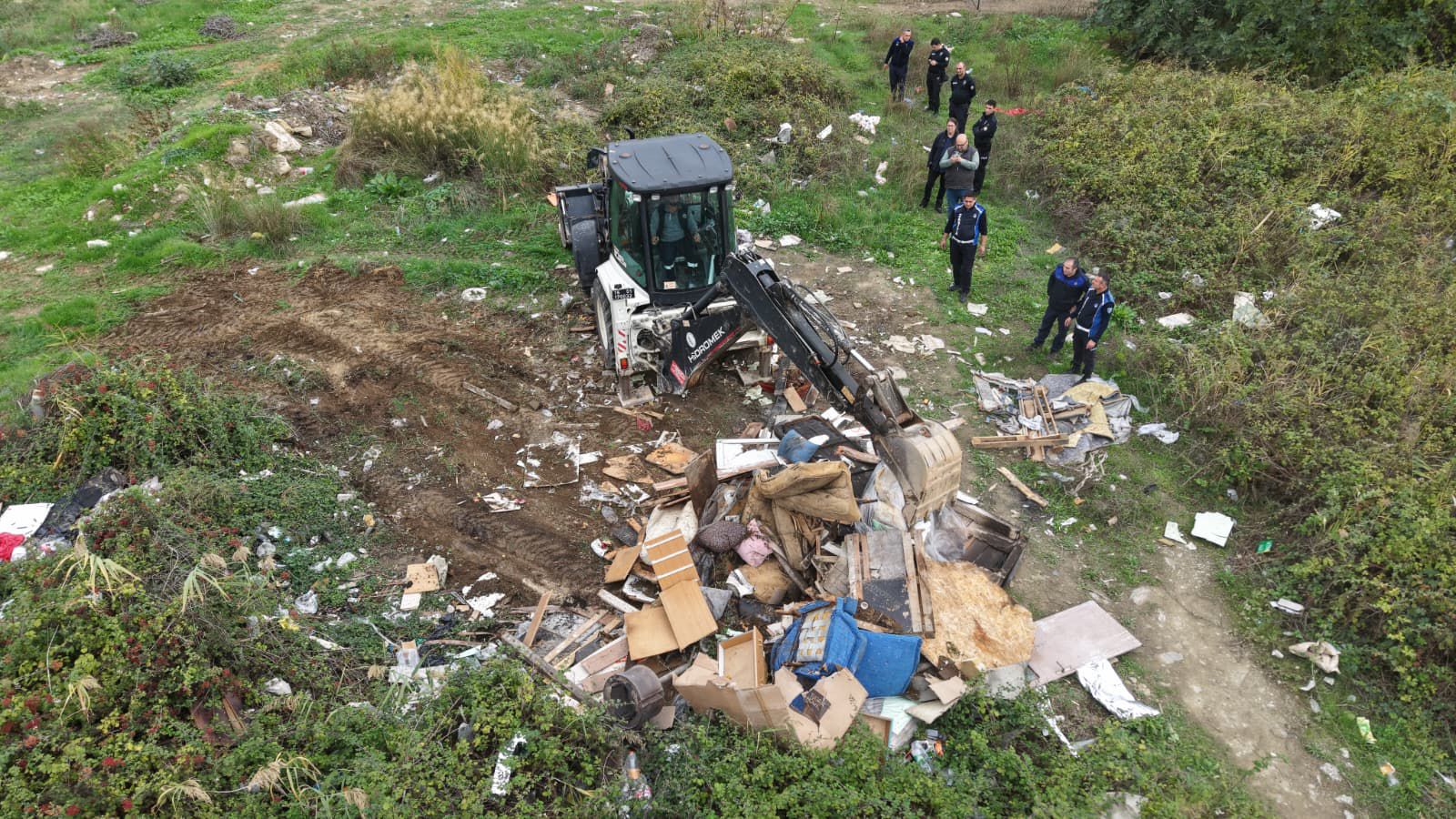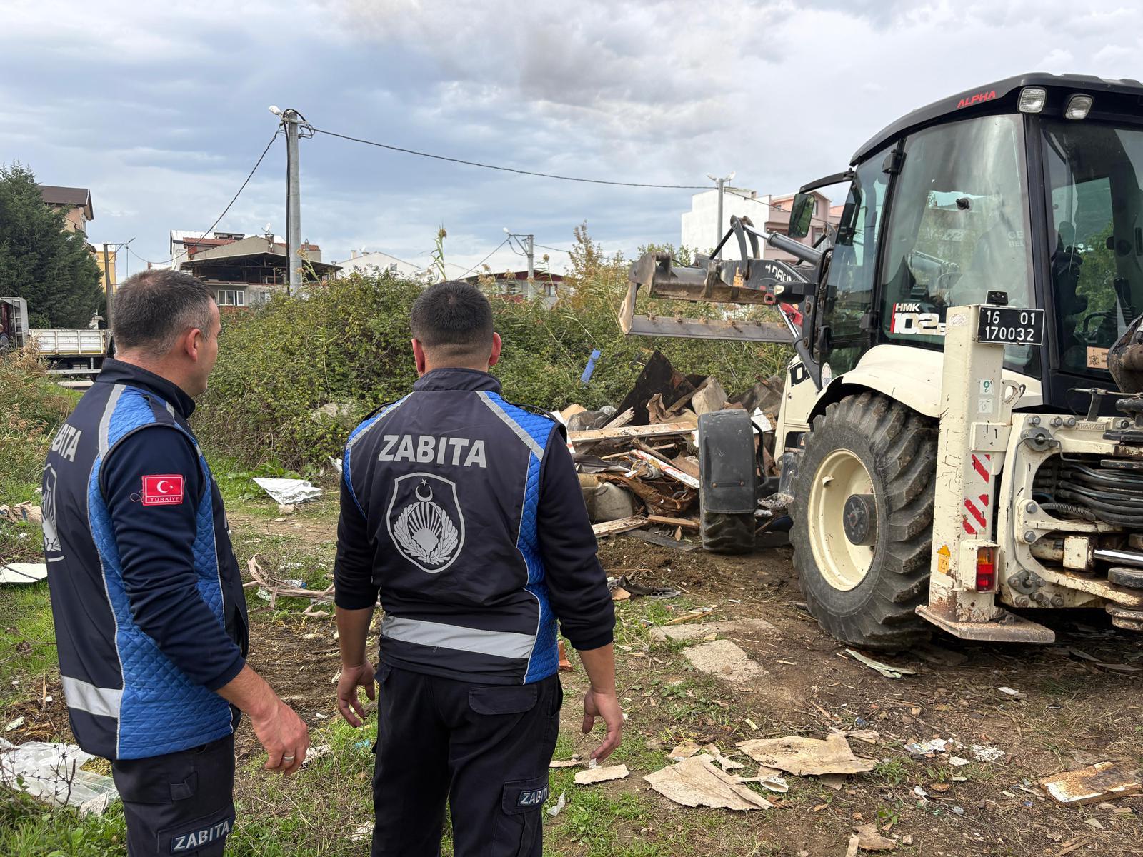 Vatandaşlar tarafından çevreye rahatsızlık verildiği, ateş yakıldığı ve içerisinde alkol alındığı ifade edilen barakanın Gemlik Belediyesi Zabıta Müdürlüğü ekipleri çevre güvenliği alarak kepçe marifetiyle yıkımını gerçekleştirdi.