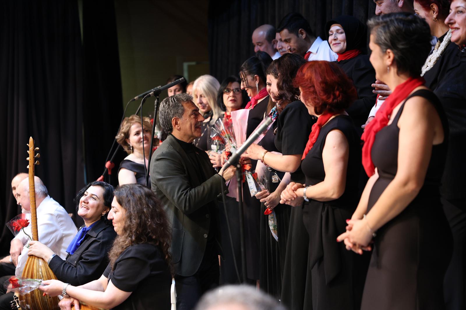 Konserin sonunda Başkan Şükrü Deviren, koroda yer alan kadın üyelere karanfil hediye ederek 8 Mart Dünya Emekçi Kadınlar Günü’nü kutladı.