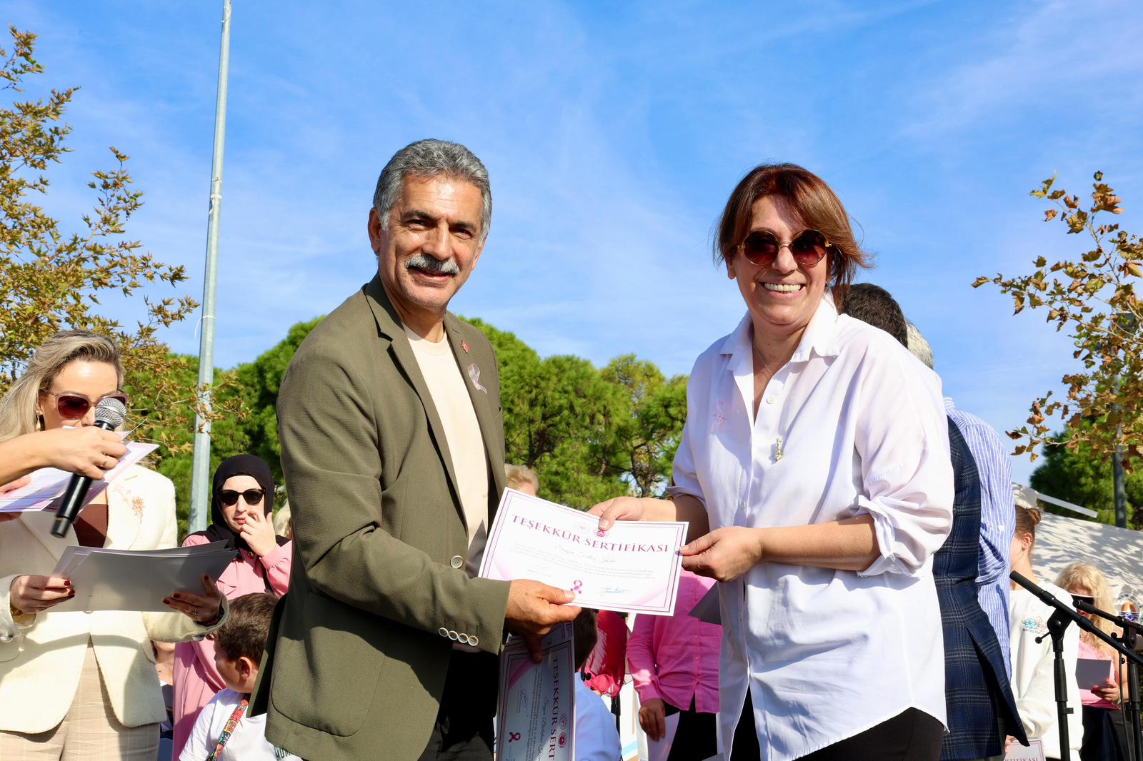 Pembe rengin, meme kanseri farkındalığının simgesi olarak kadınların gücünü, umudunu ve dayanışmasını temsil ettiğine dikkat çekilen etkinlikte, erken teşhisin önemine vurgu yapıldı.
