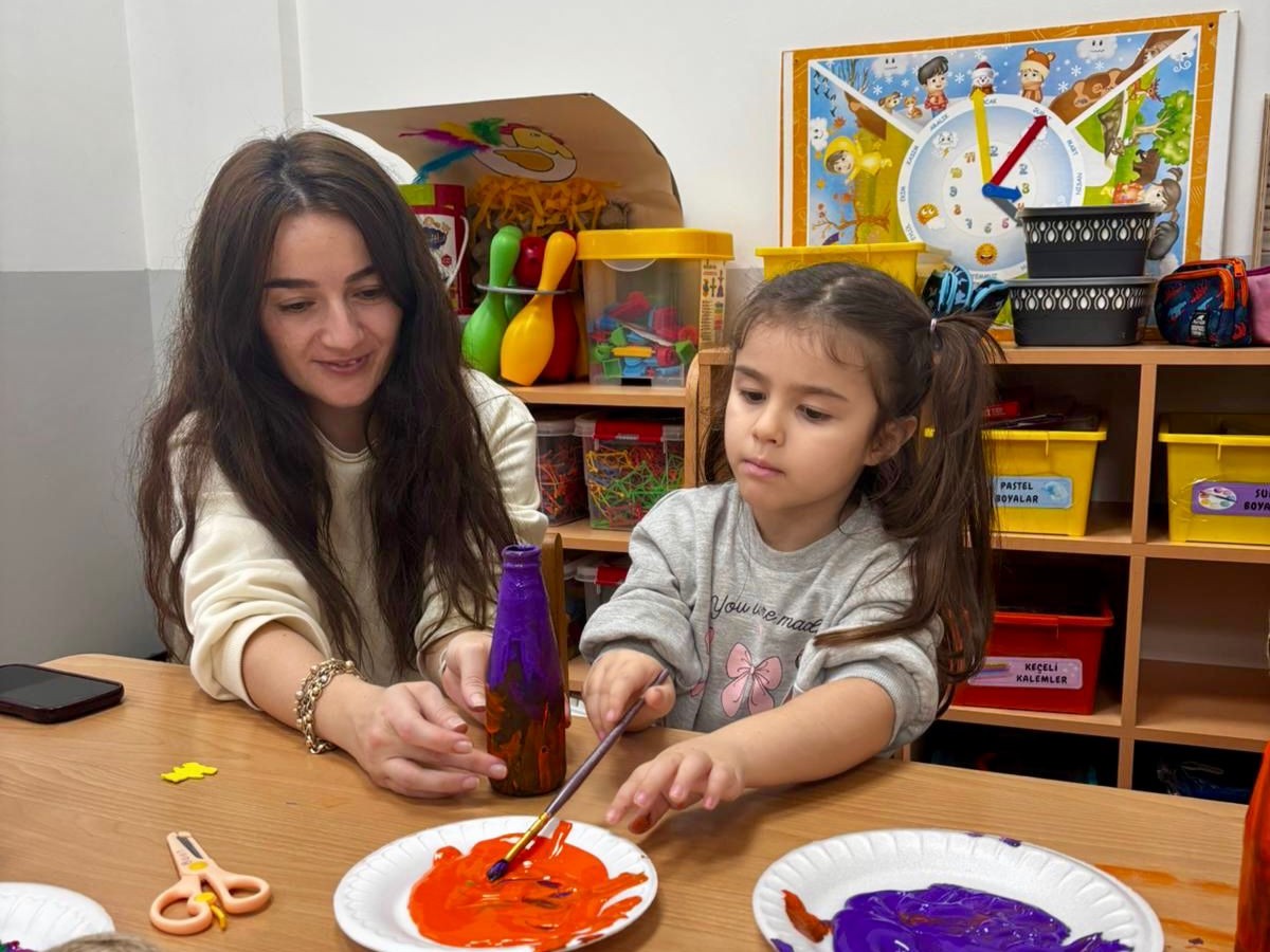 Etkinlik boyunca çocuklar; vazo tasarımı ve kolaj çalışmalarıyla hem el becerilerini geliştirdi hem de üretmenin, paylaşmanın ve birlikte başarmanın mutluluğunu yaşadı. Renkli çalışmaların ortaya çıktığı programda, neşeli anlar yaşanırken çocukların yaratıcılığı ön plana çıktı.