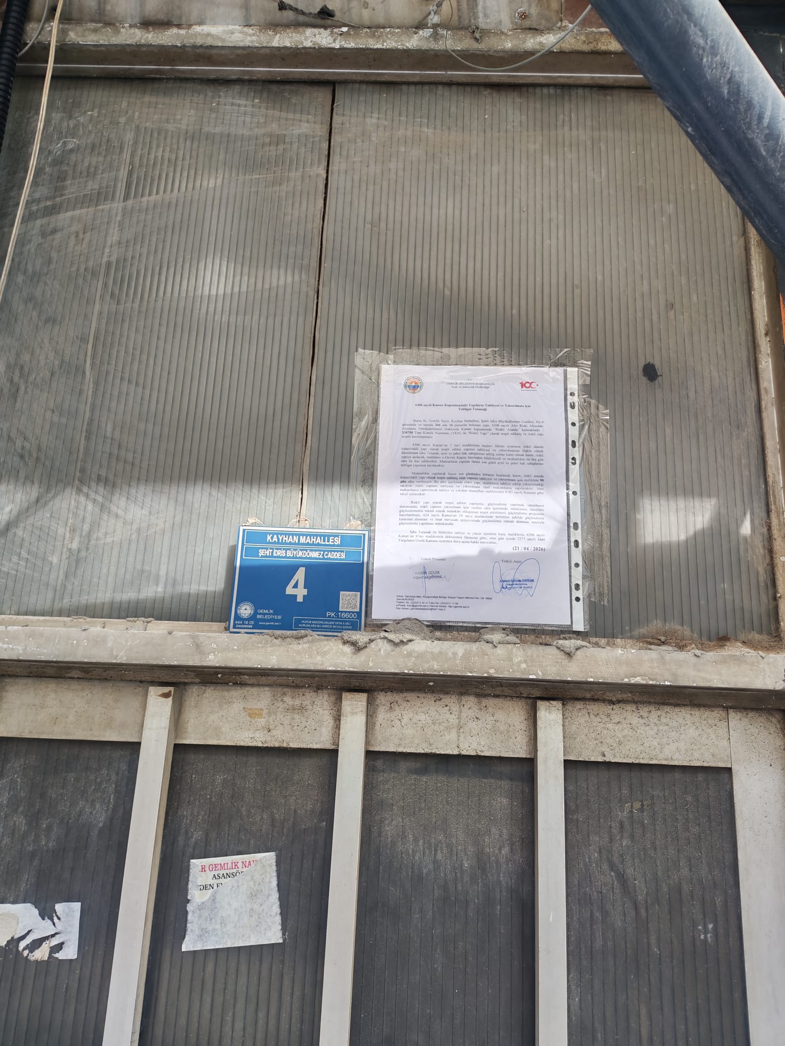 6306 sayılı Kanun’un 5 inci maddesinin beşinci fıkrası uyarınca; riskli alanda kalan/riskli yapı olarak tespit edilen yapının tahliyesi ve yıktırılmasına ilişkin olarak düzenlenen işbu Tutanak, ayni ve şahsi hak sahiplerine tebliğ yerine kaim olmak üzere, riskli yapıya asılacak, maliklere e-Devlet Kapısı üzerinden bildirilecek ve muhtarlıkta on beş gün süre ile ilan edilecektir. Muhtarlıkta yapılan ilanın son günü ayni ve şahsi hak sahiplerine tebligat yapılmış sayılacaktır.