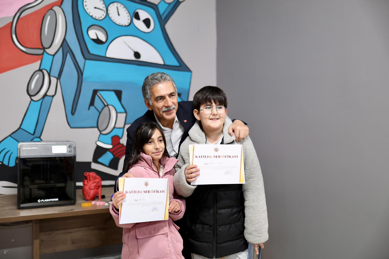 Eğitim sürecinde öğrenciler 3D yazılım, robotik kodlama ve teknoloji odaklı üretim alanlarında kendilerini geliştirdi. Ara tatilin ardından ikinci grup eğitimlerine devam edecek.