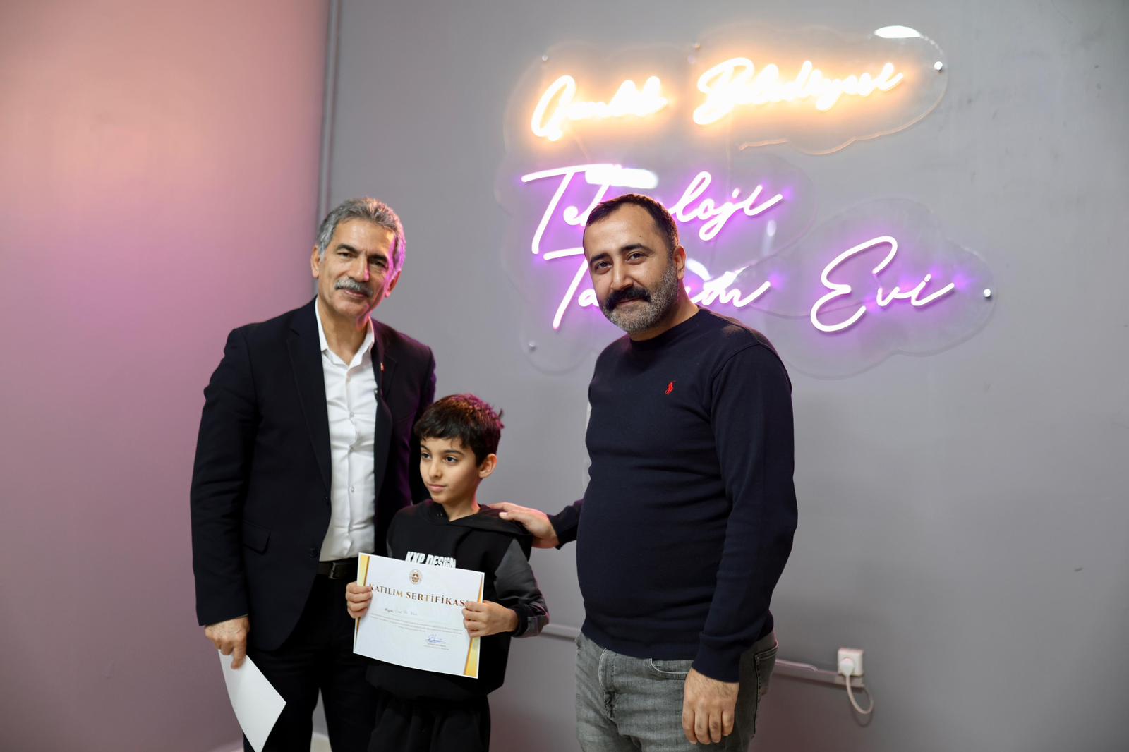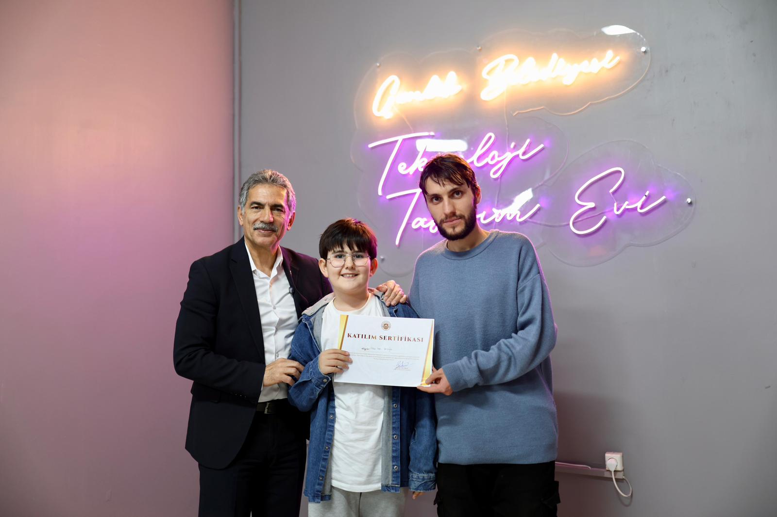 Gemlik Belediyesi Teknoloji ve Tasarım Evi’nde robotik kodlama eğitimlerinin ilk mezunları sertifikalarını aldı. İki aylık eğitim sürecini başarıyla tamamlayan öğrenciler için sertifika töreni düzenlendi.