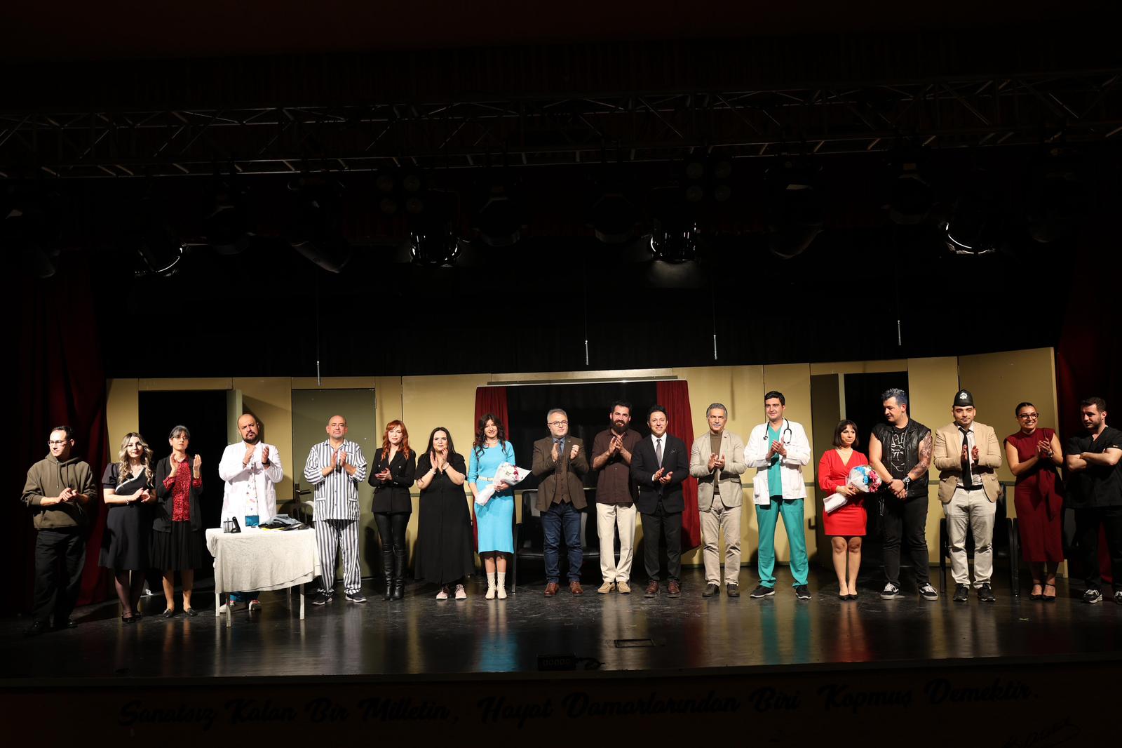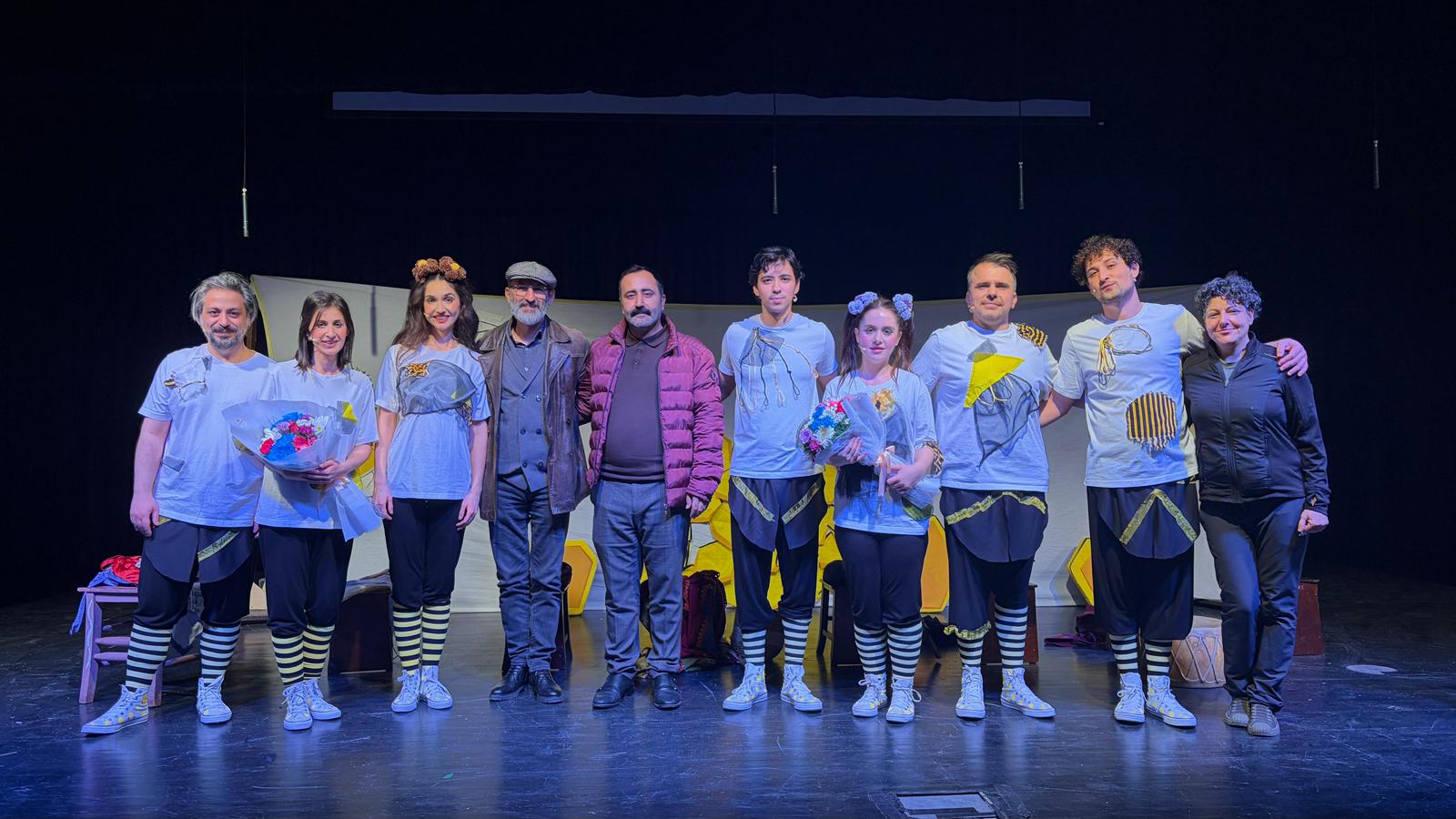 Gösterinin ardından Gemlik Belediye Başkanı Şükrü Deviren ve Bursa Barosu Başkanı Metin Öztosun tarafından, Yırtık Cübbe Tiyatro Topluluğu sorumlusu Leylanur Kaymakçı ile Özgür Aksoy’un annesi Gülay Aksoy’a çiçek takdim edildi.