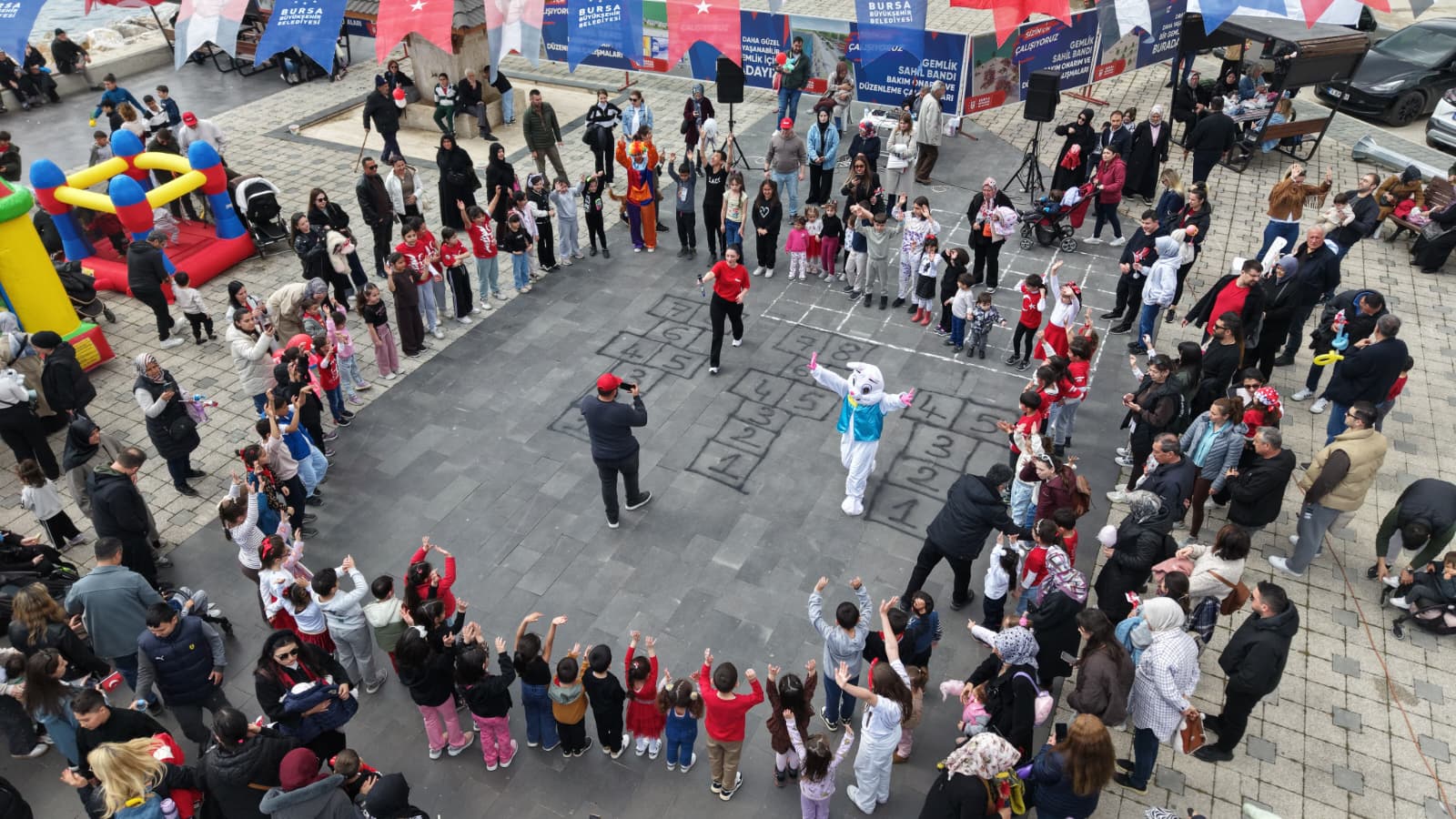 Kutlamalar öğleden sonra Gemlik Belediyesi tarafından düzenlenen 23 Nisan Şenlikleri ile devam etti. İskele Meydanı’nda kurulan şenlik alanında çocuklar için birbirinden renkli etkinlikler hazırlandı. Şişme oyun grupları, eğlenceli atölyeler ve çeşitli aktivitelerin yer aldığı alanda çocuklara patlamış mısır ve pamuk şeker ikram edildi. Gün boyunca alana gelen Gemlikli çocuklar bayramın keyfini doyasıya çıkardı.