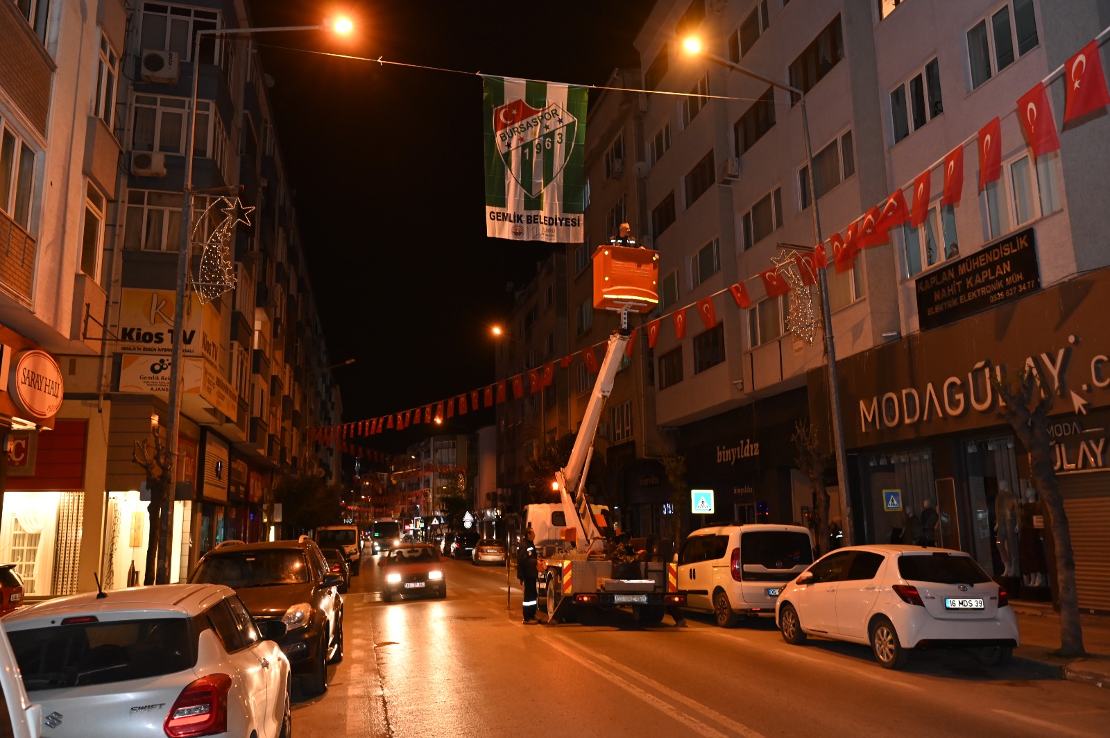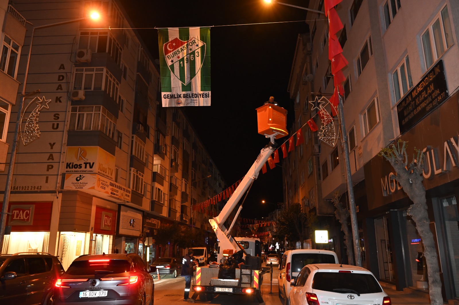 Gemlik Belediyesi, kentin simgelerinden olan Bursaspor’a destek amacıyla ilçenin dört bir yanını yeşil beyaz bayraklarla donattı. İlçe genelinde gerçekleştirilen çalışma kapsamında meydanlar, ana arterler ve sahil hattı başta olmak üzere birçok noktaya Bursaspor bayrakları asıldı.